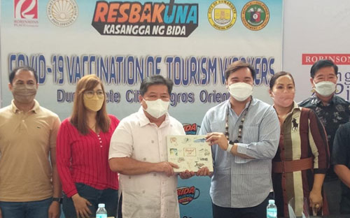 Department of Tourism (DOT) assistant secretary Woodrow C. Maquiling Jr. announced at the ceremonial vaccination of tourism workers the good news that 50,000 doses of COVID-19 vaccines have been allocated for Dumaguete City, through a joint effort by the local government unit and the DOT to restart the tourism industry in the region.